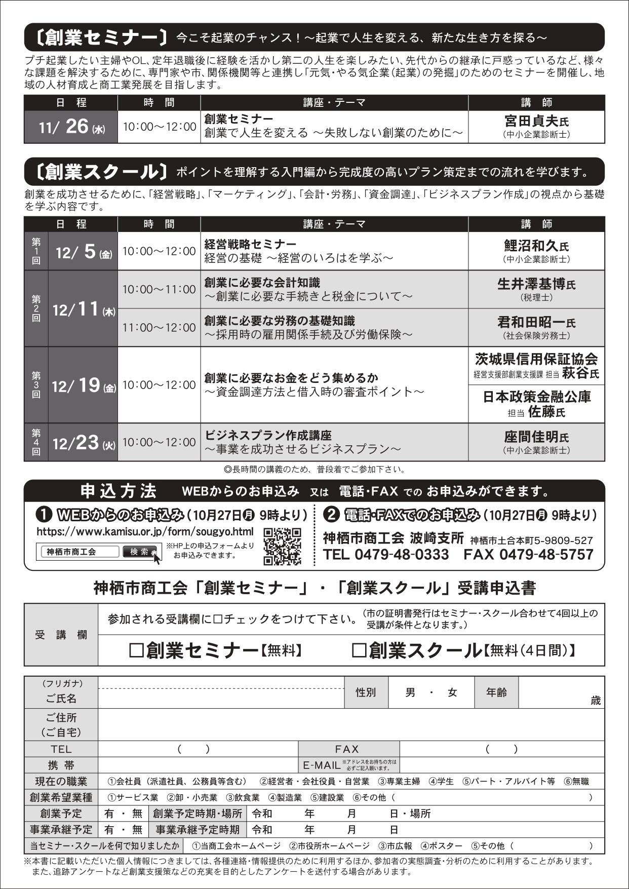 「創業セミナー」・「創業スクール」受講申込フォーム